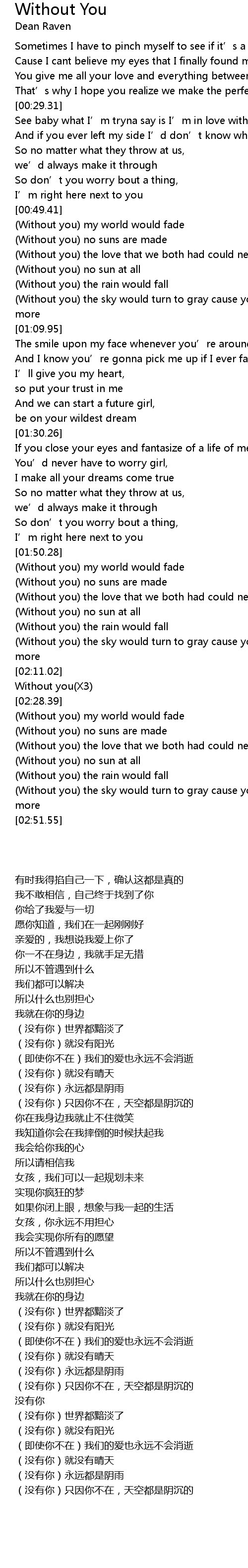 | [00:55.06] | (Without you) the love that we both had could never be erased |