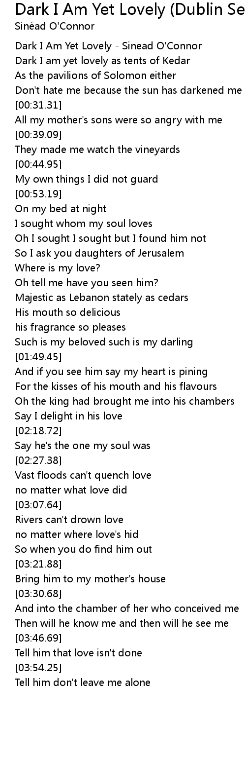 [00:01.02] Dark I Am Yet Lovely - Sinead O'Connor