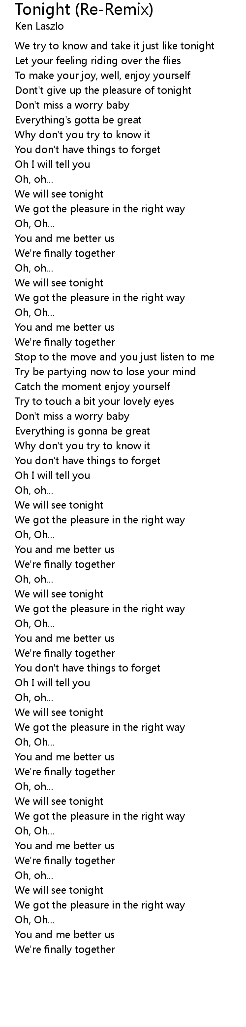 We try to know and take it just like tonight |