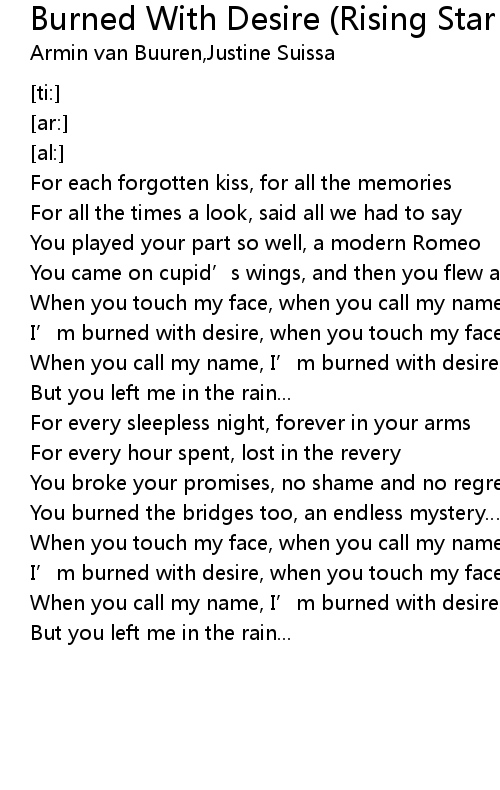 | [04:31.56] | I' m burned with desire, when you touch my face |