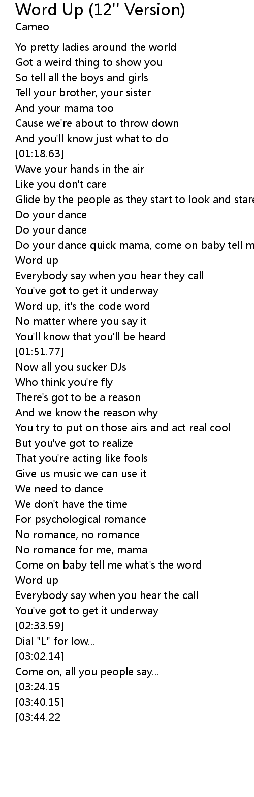 Word Up (12'' Version) Lyrics