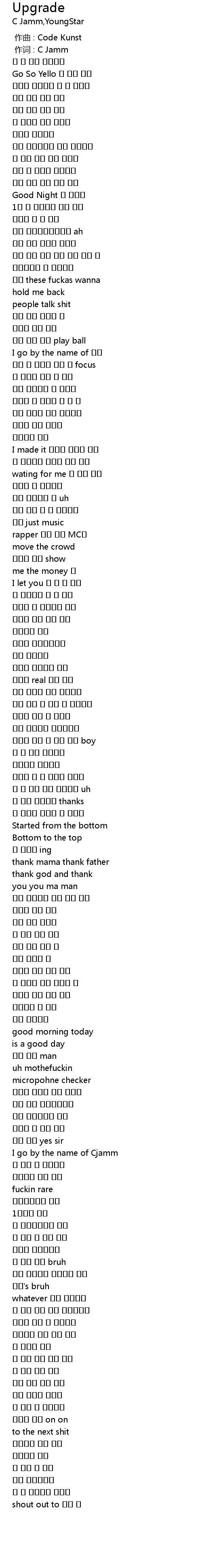 | [00:01.00] | 作词 : C Jamm |
