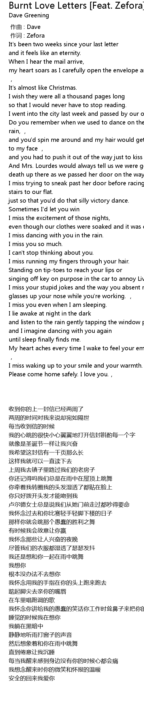 | Song | Burnt Love Letters [Feat. Zefora] |