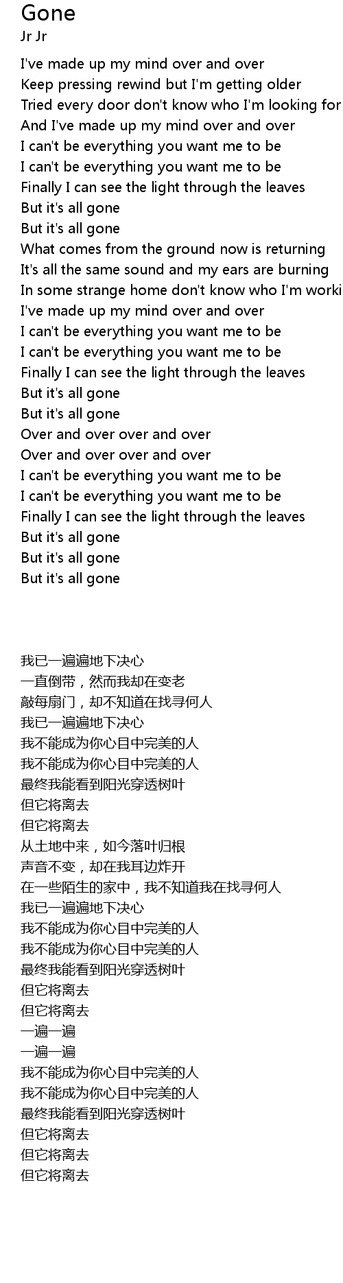 | [01:09.41] | But it's all gone |