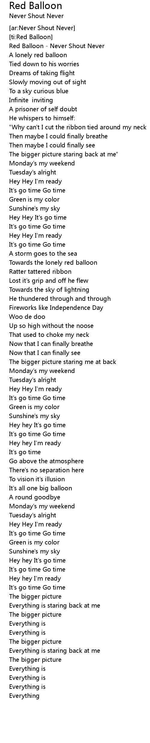 Red Balloon - Never Shout Never |