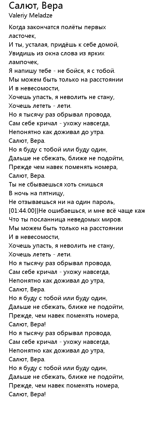 Салют, Вера , Lyrics