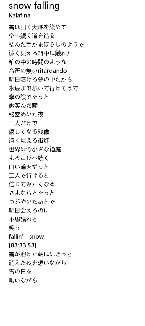| [03:24.24] | fallin’ snow |