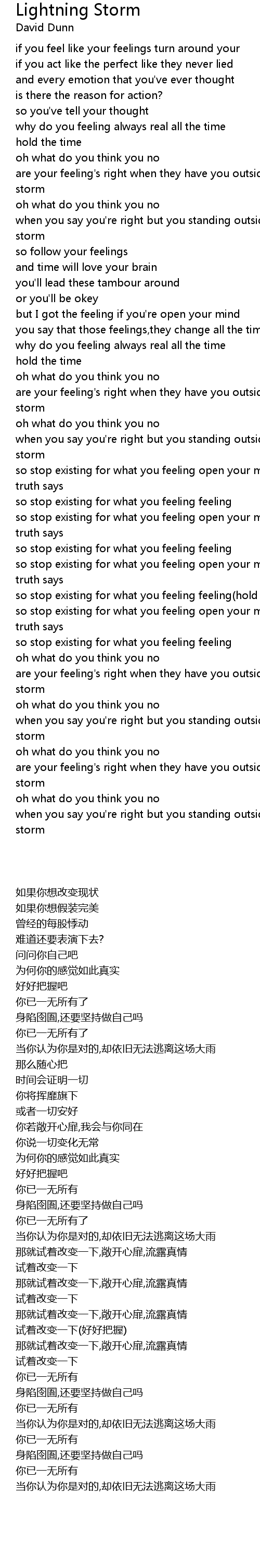 are your feeling's right when they have you outside in the lighting storm |
