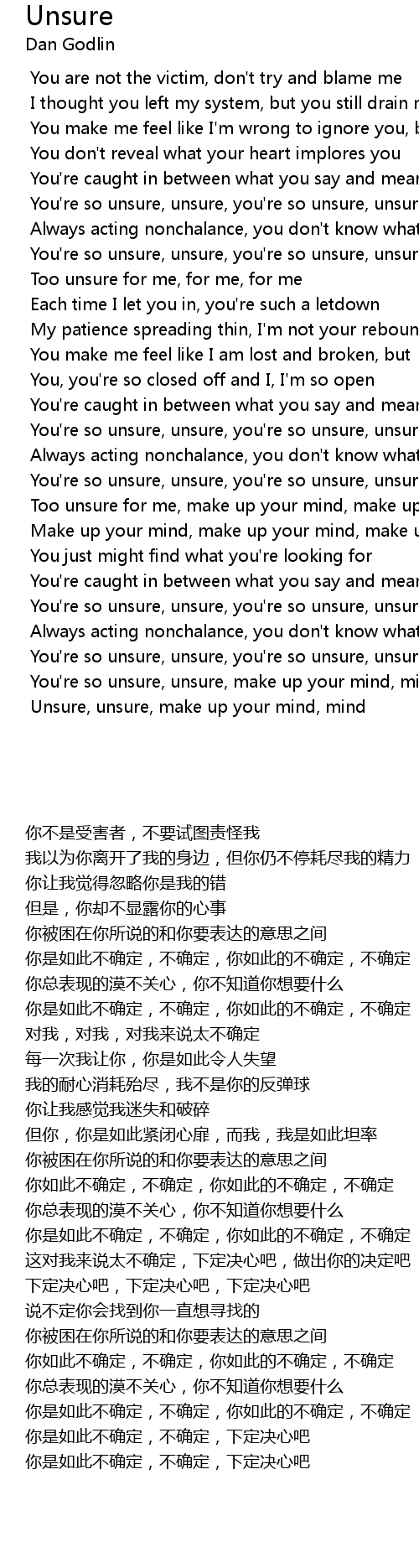 [03:32.87] Unsure, unsure, make up your mind, mind