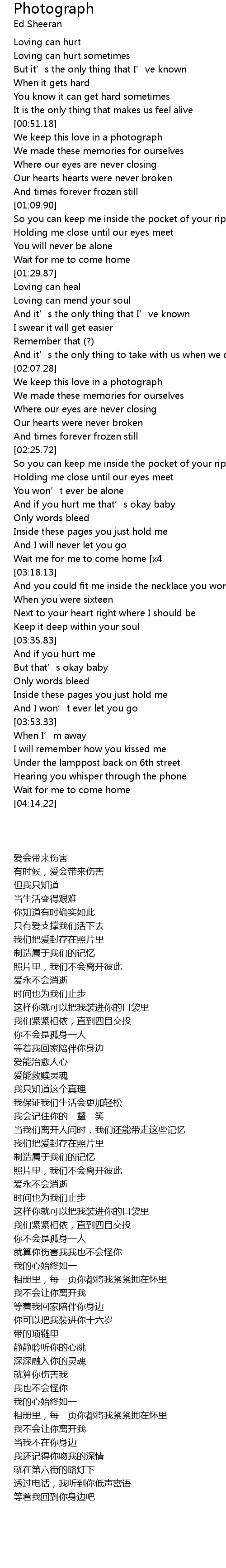 | [00:54.29] | We keep this love in a photograph |