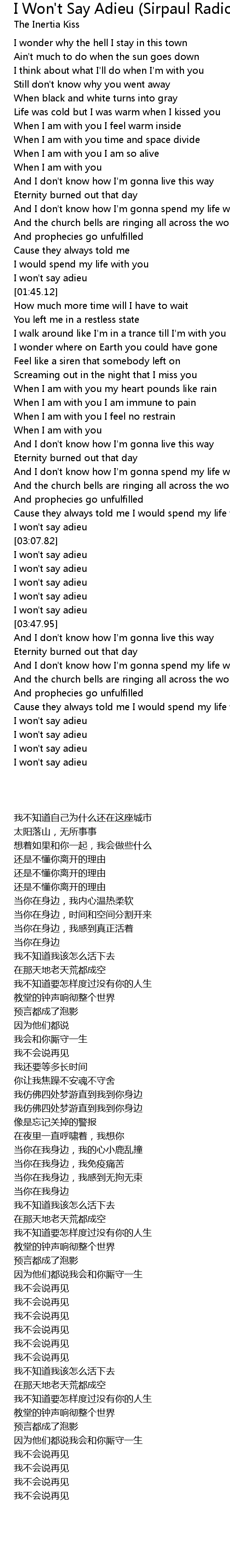 I Won't Say Adieu (Sirpaul Radio Remix) Lyrics