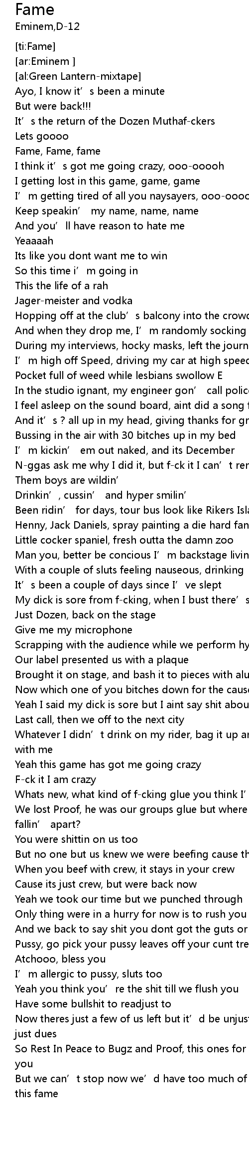| [02:54.81] | We lost Proof, he was our groups glue but where was you when we were fallin’ apart? |