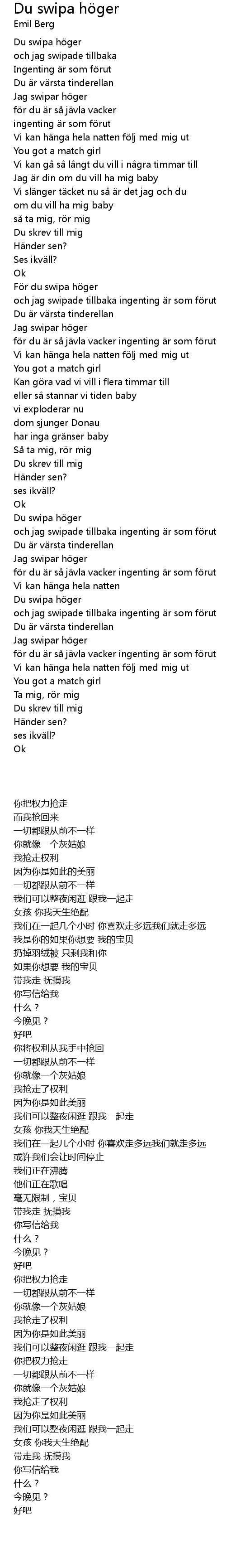 | Song | Du swipa höger |