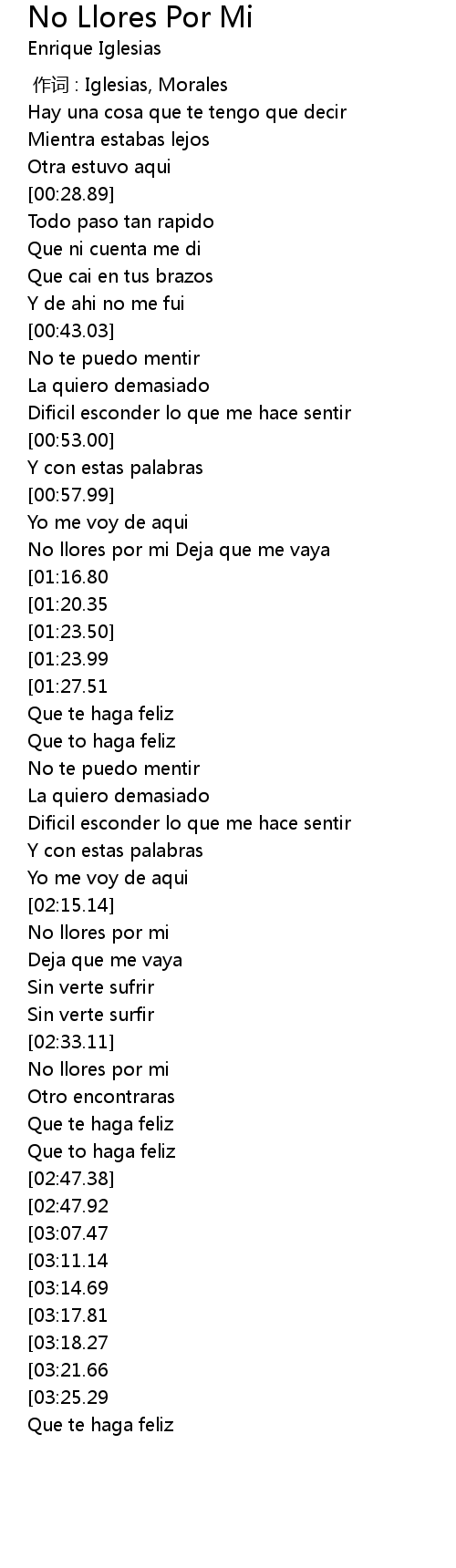 | [03:33.40][02:47.92] | No llores por mi |