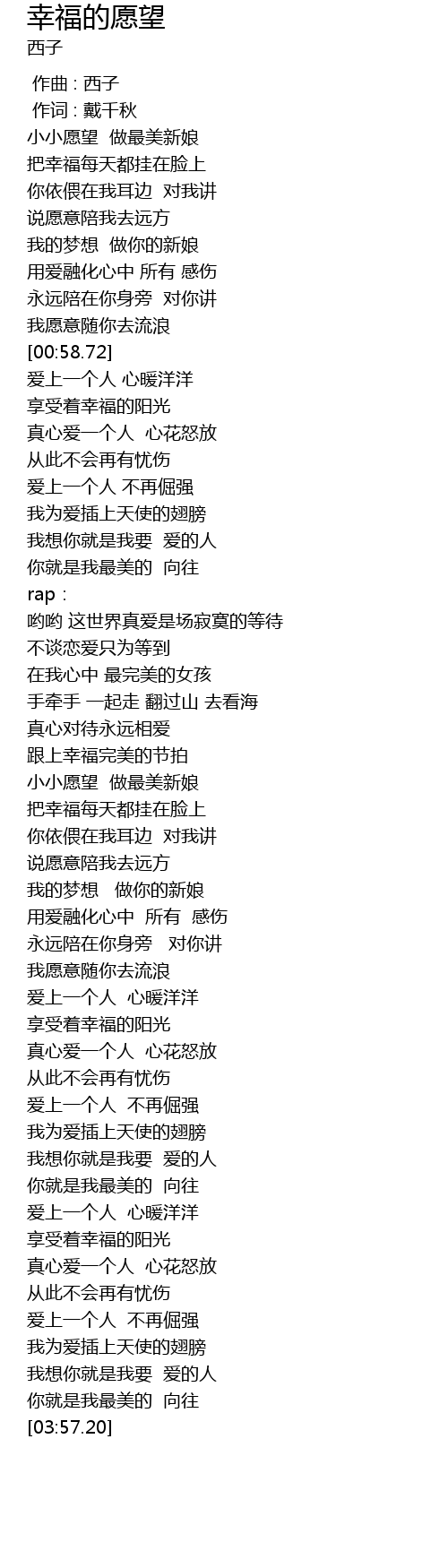 | [01:59.17] | 小小愿望 做最美新娘 |