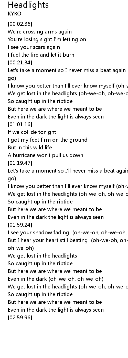 | [00:43.83] | We get lost in the headlights (oh-we-oh, oh-we-oh) |