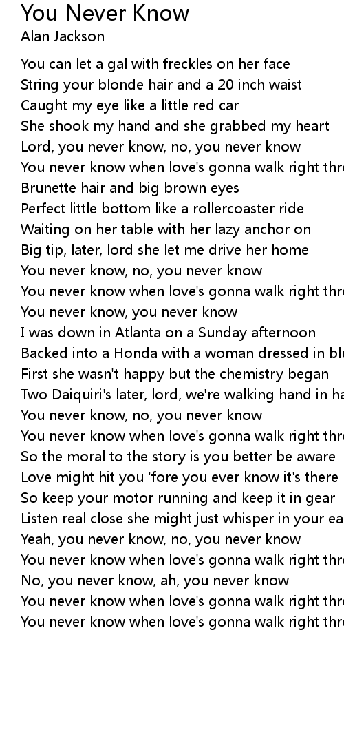 Lord, you never know, no, you never know |