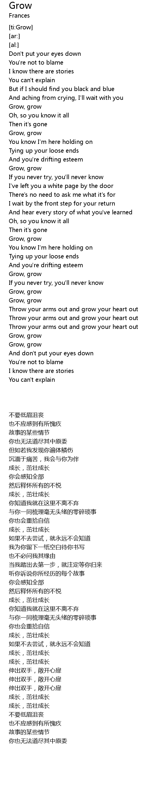 | [02:33.09] | Throw your arms out and grow your heart out |