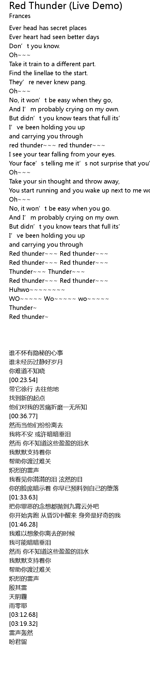| [03:46.27] | Red thunder |