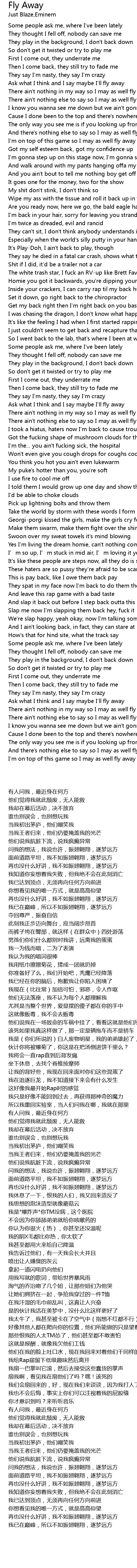 | [00:36.18] | There ain' t nothing else to say so I may as well fly away |