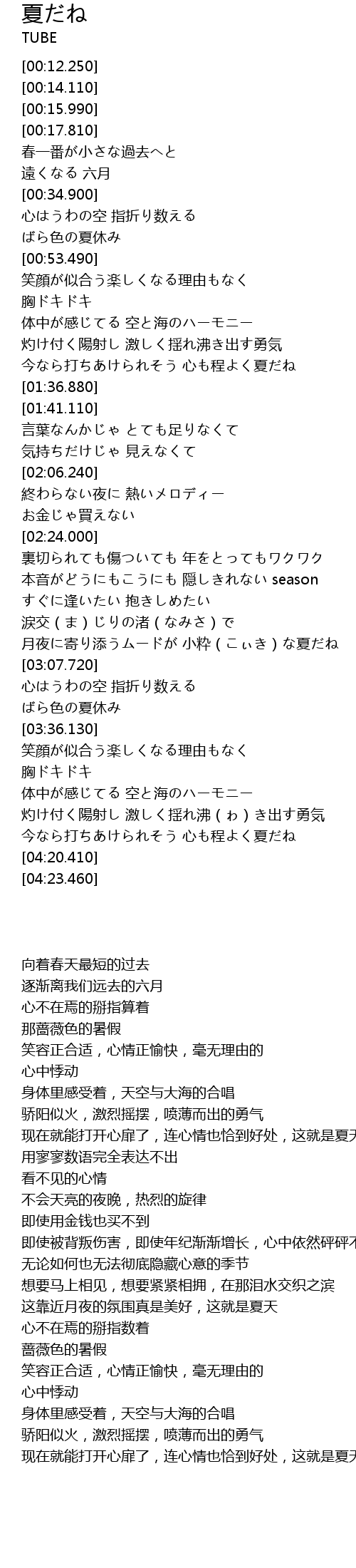 | [04:02.640] | 今なら打ちあけられそう 心も程よく夏だね |