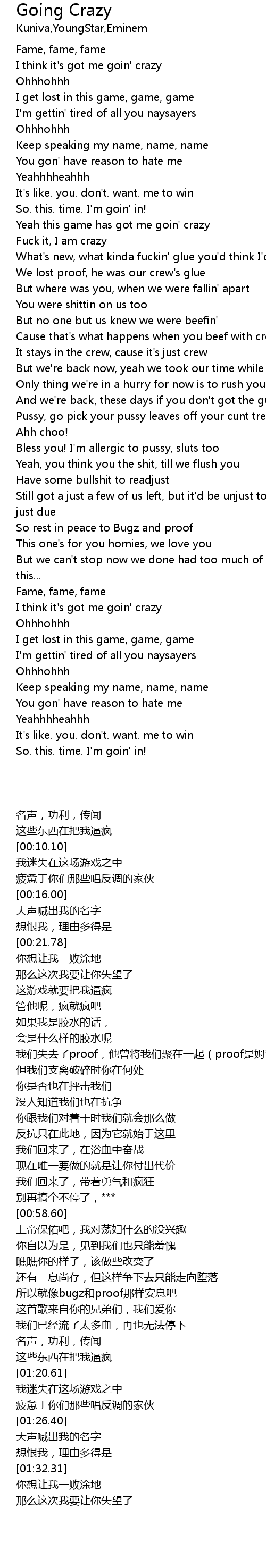 | [00:29.53] | Yeah this game has got me goin' crazy |