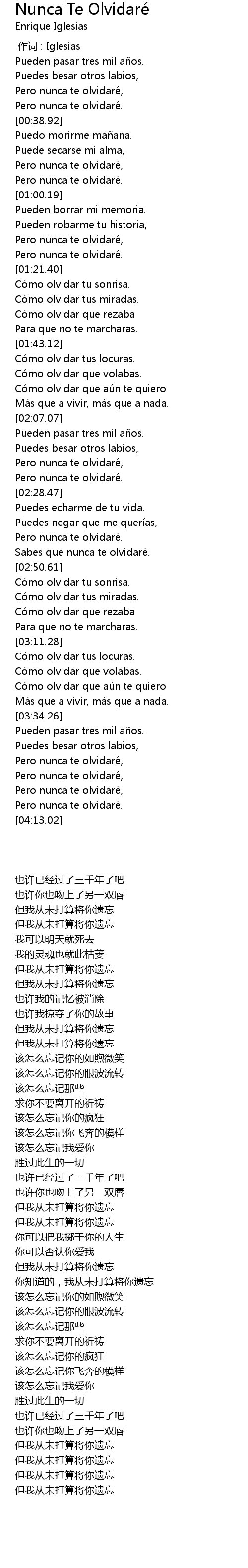 | [02:46.96] | Sabes que nunca te olvidare. |