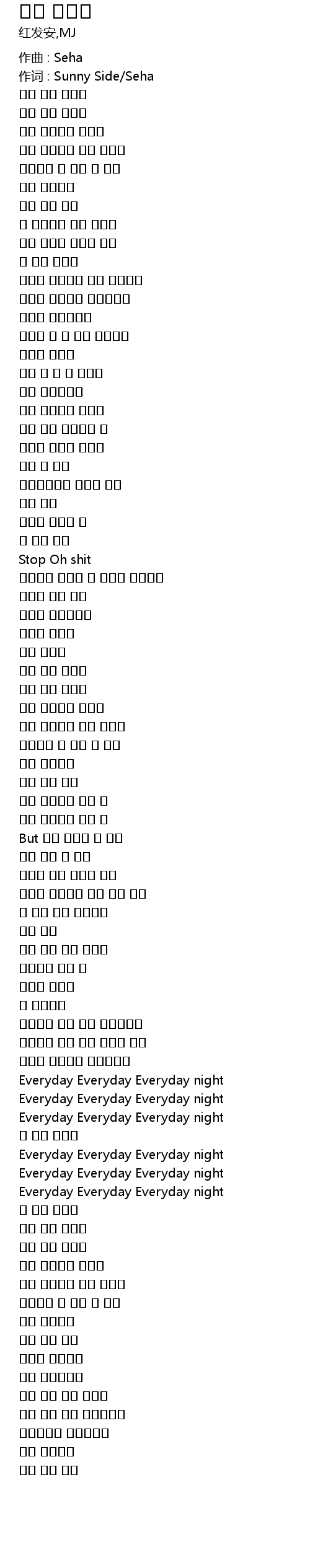 作词 : Sunny Side/Seha |