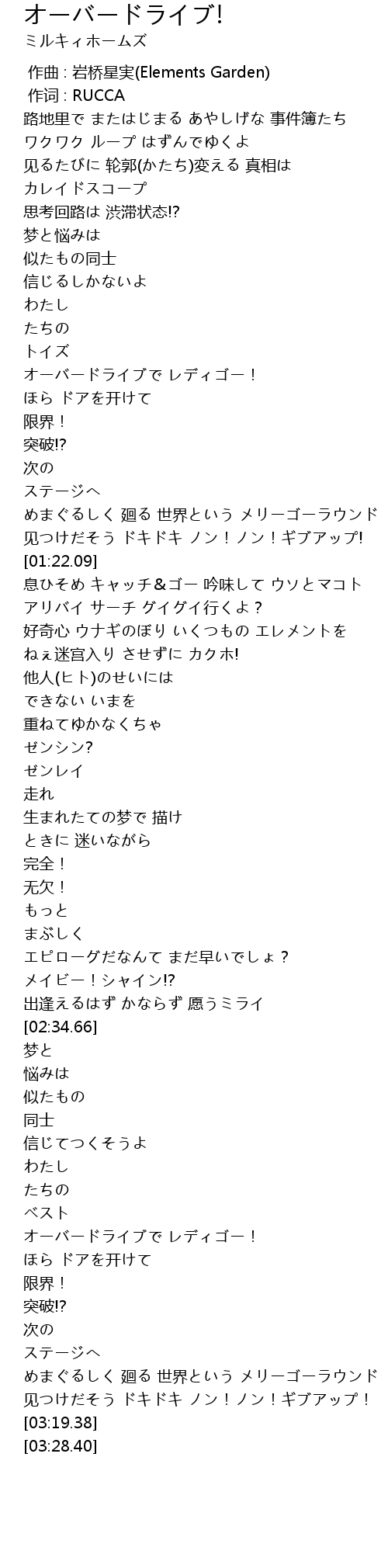 | [02:52.01] | オーバードライブで レディゴー! |