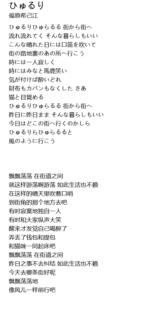 ひゅるりひゅらるる 街から街へ |