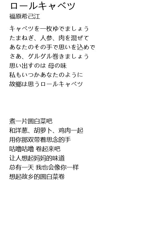 | [01:08.37] | 故郷は思うロールキャベツ |