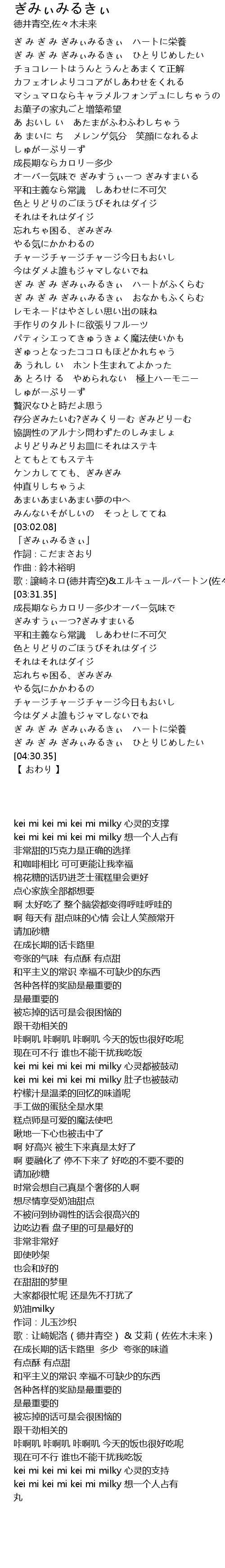 | [04:15.38] | ぎ み ぎ み ぎみぃみるきぃ ハートに栄養 |