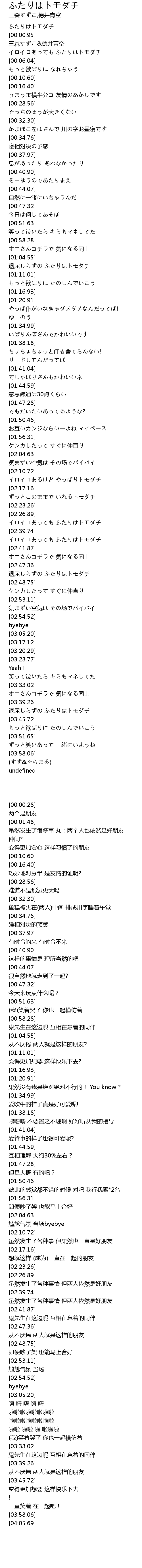 | [02:40.85] | イロイロあっても ふたりはトモダチ |