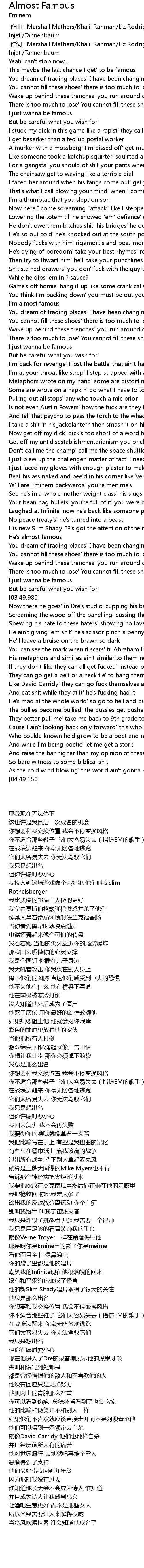 | [03:19.200] | His new Slim Shady EP' s got the attention of the might DRE |