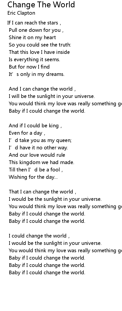 | Baby if I could change the world. | |
