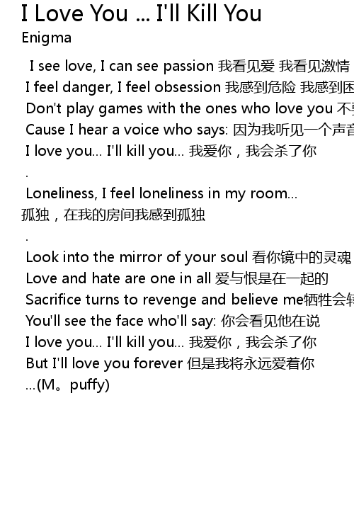 | I love you... I'll kill you... 我爱你,我会杀了你 | |