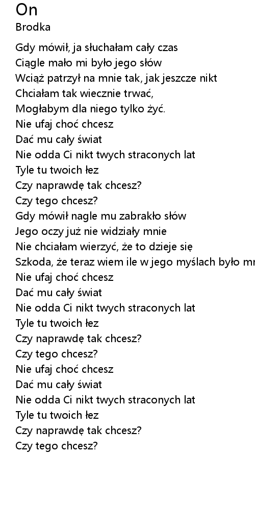 | [00:22.14] | Ci gle ma o mi by o jego so w |