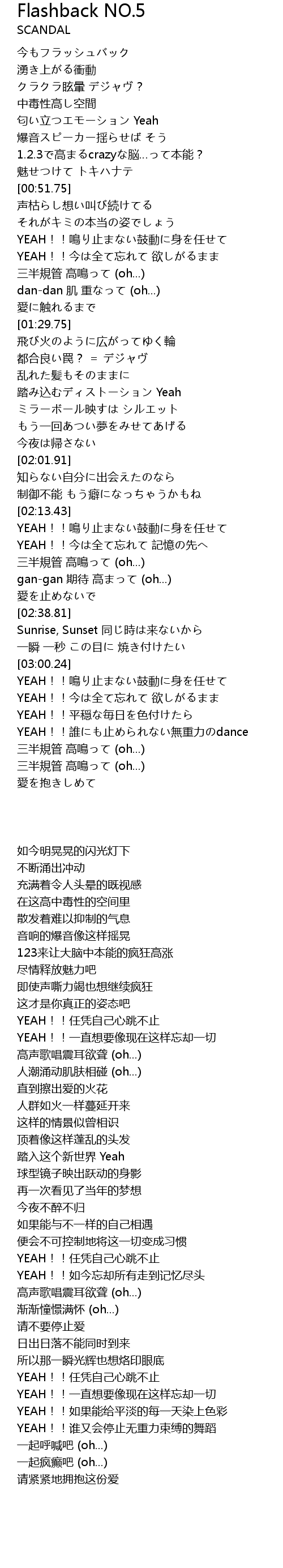 | [02:19.54] | YEAH!!今は全て忘れて 記憶の先へ |