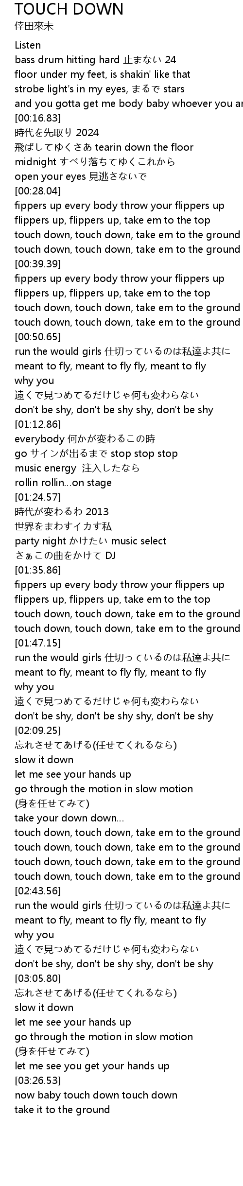 | [03:31.73] | now baby touch down touch down |