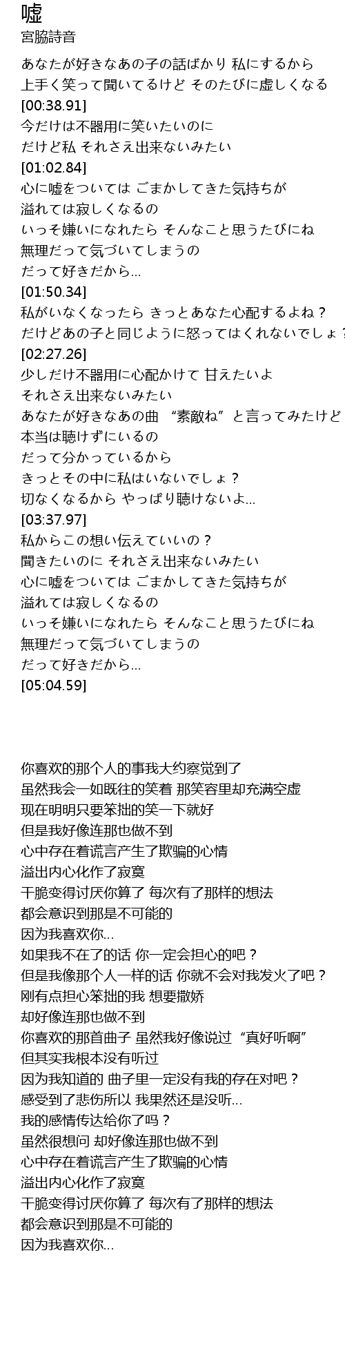 | [04:17.21] | 心に嘘をついては ごまかしてきた気持ちが |