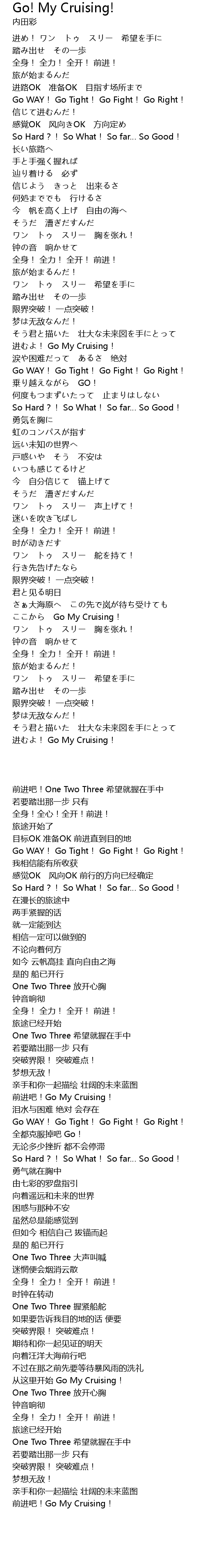 | [03:06.82] | Go My Cruising! |