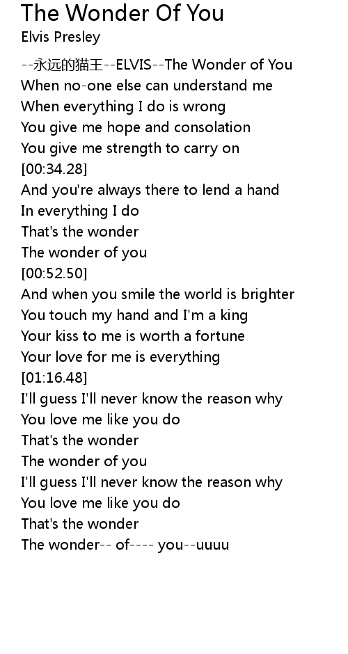 | [00:04.72] | yǒng yuǎn de māo wáng ELVISThe Wonder of You |