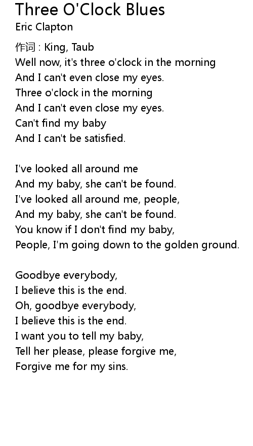 | Well now, it' s three o' clock in the morning | |