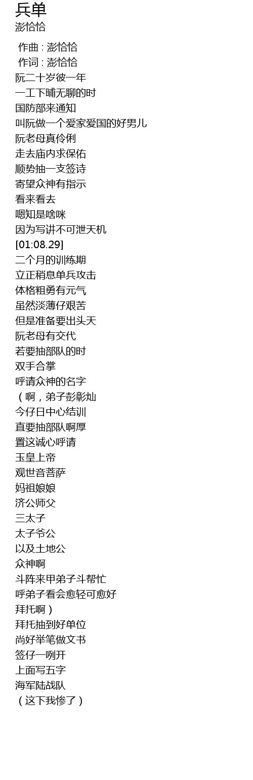 | [01:52.50] | (啊,弟子彭彰灿 |