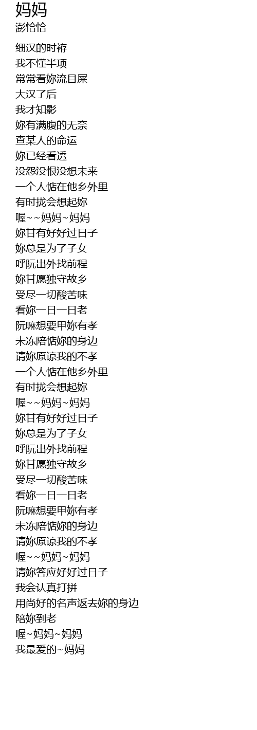 | [01:15.40] | 喔~~妈妈~妈妈 |