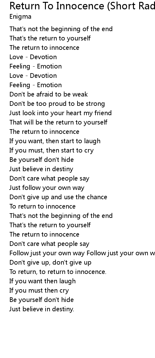 The return to innocence |
