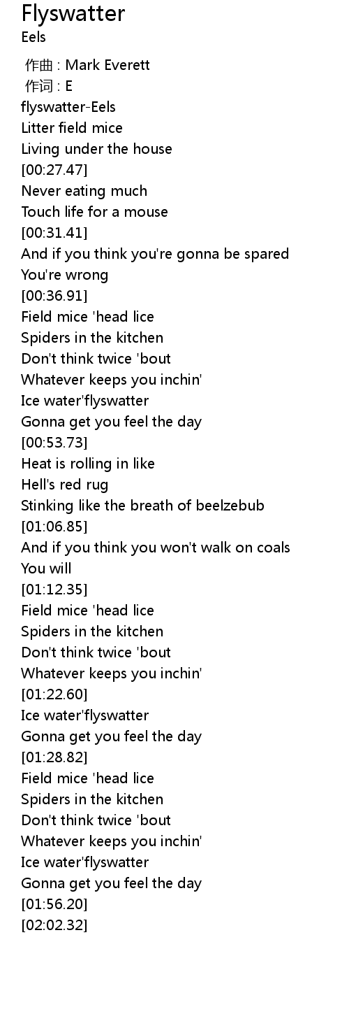 | [00:01.10] | flyswatter-Eels |