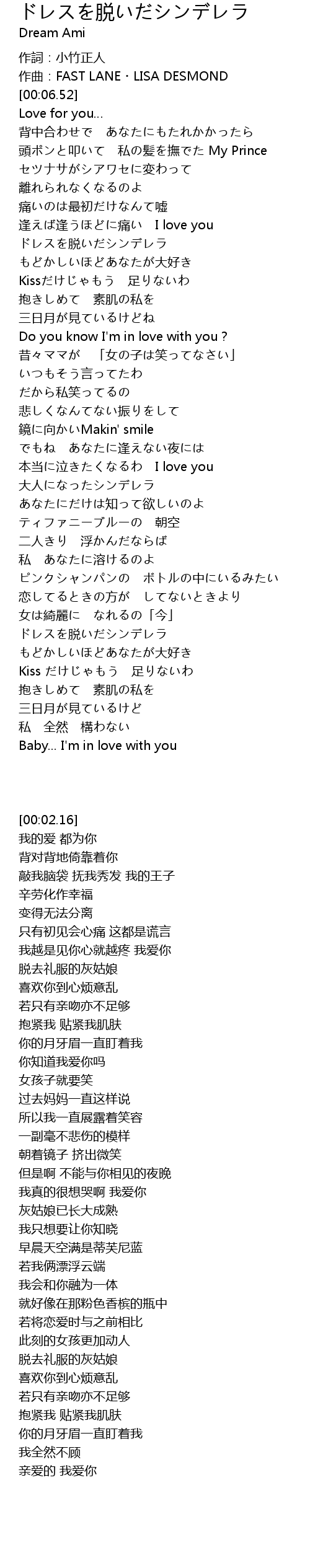 | [02:59.62] | ドレスを脱いだシンデレラ |