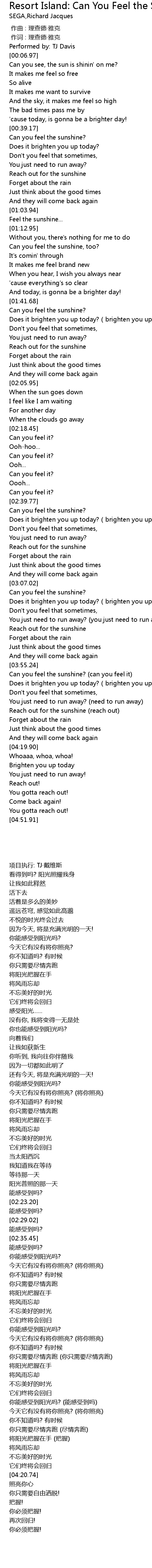 | Song | Resort Island: Can You Feel the Sunshine? |