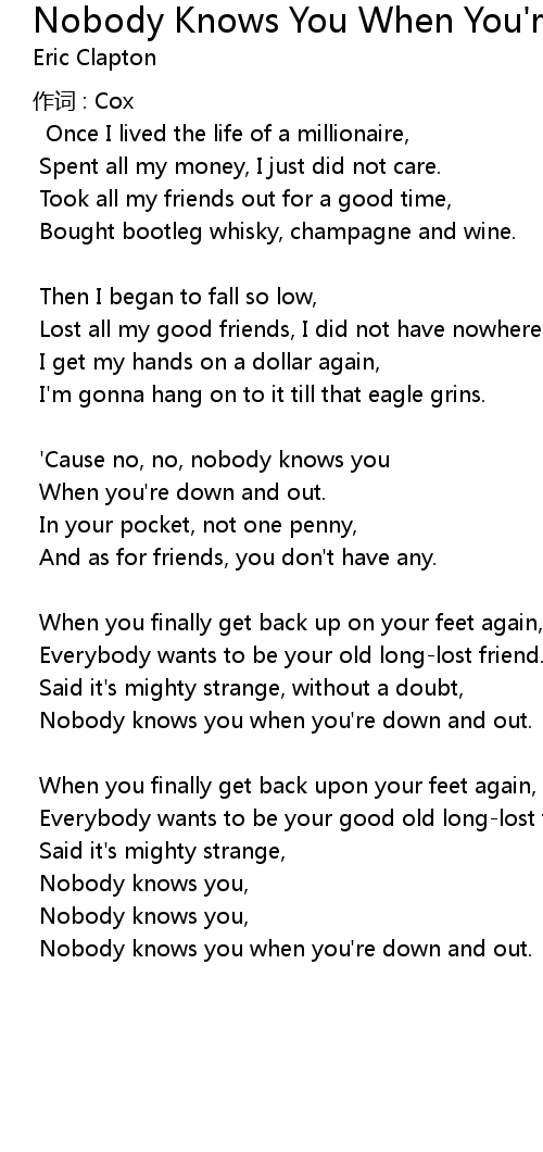 | Song | Nobody Knows You When You're Down & Out (live) |
